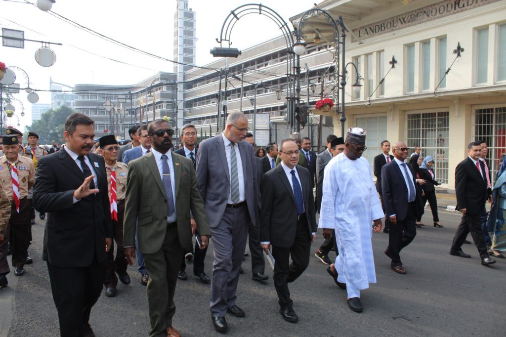 Para perwakilan negara-negara asing melakukan foto bersama di depan Hotel Savoy Homann sebelum berjalan menuju Gedung Merdeka (Isolapos/Nabil Haqqillah).Para perwakilan negara-negara asing sedang berjalan dari Hotel Savoy Homann menuju Kompleks Gedung Merdeka untuk menghadiri upacara (Isolapos/Nabil Haqqillah).Para anggota Pramuka sedang mengibarkan bendera-bendera negara peserta konferensi (Isolapos/Nabil Haqqillah).Duta Besar Nigeria untuk Indonesia, Usman Ari Ogah sedang berjalan menuju Ruang Pertemuan (Isolapos/Nabil Haqqillah).Perwakilan negara-negara asing dan para pejabat negara sedang berfoto bersama di Ruang Pertemuan (Isolapos/Nabil Haqqillah).Duta Besar Sri Lanka untuk Indonesia, Jayanath Colombage (Kanan) sedang berbicara kepada awak media dalam konferensi pers bersama Direktur Jenderal Informasi dan Diplomasi Publik Kemenlu, Teuku Fayadh (Tengah) dan Kepala Museum KAA, Dahlia Kusuma Dewi. (Isolapos/Nabil Haqqillah).Konselor Kedutaan Besar Kerajaan Thailand untuk Indonesia, Nawin Chirapant sedang mengunjungi ruang pameran Museum Konferensi Asia Afrika (Isolapos/Nabil Haqqillah).
