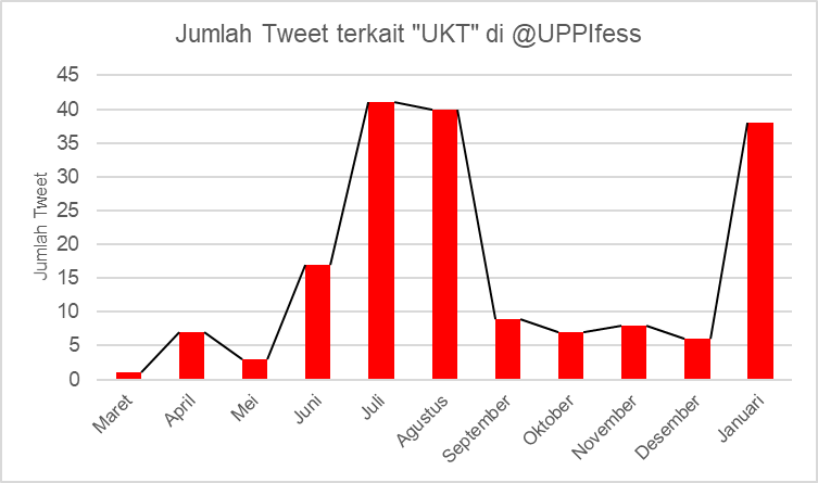 Beralih pada Gambar 2, sajian data yang tercantum merupakan penggambaran bahwa wacana UKT ini seringkali muncul di masa-masa pergantian semester dengan garis besar topik mengenai permasalahan-permasalahan yang dihadapi oleh mahasiswa.